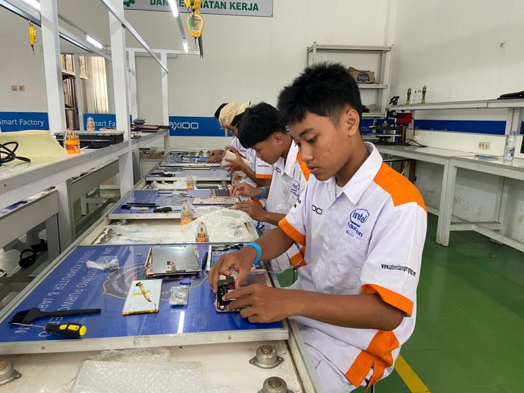Dalam kegiatan ini, siswa mempelajari berbagai komponen utama pada tablet, seperti motherboard, baterai, layar (LCD/Touchscreen), modul kamera, serta komponen pendukung lainnya. Selain itu, siswa juga dilatih untuk memahami teknik pemasangan komponen yang presisi, penggunaan alat yang tepat, serta pentingnya menjaga standar keselamatan kerja selama proses berlangsung.