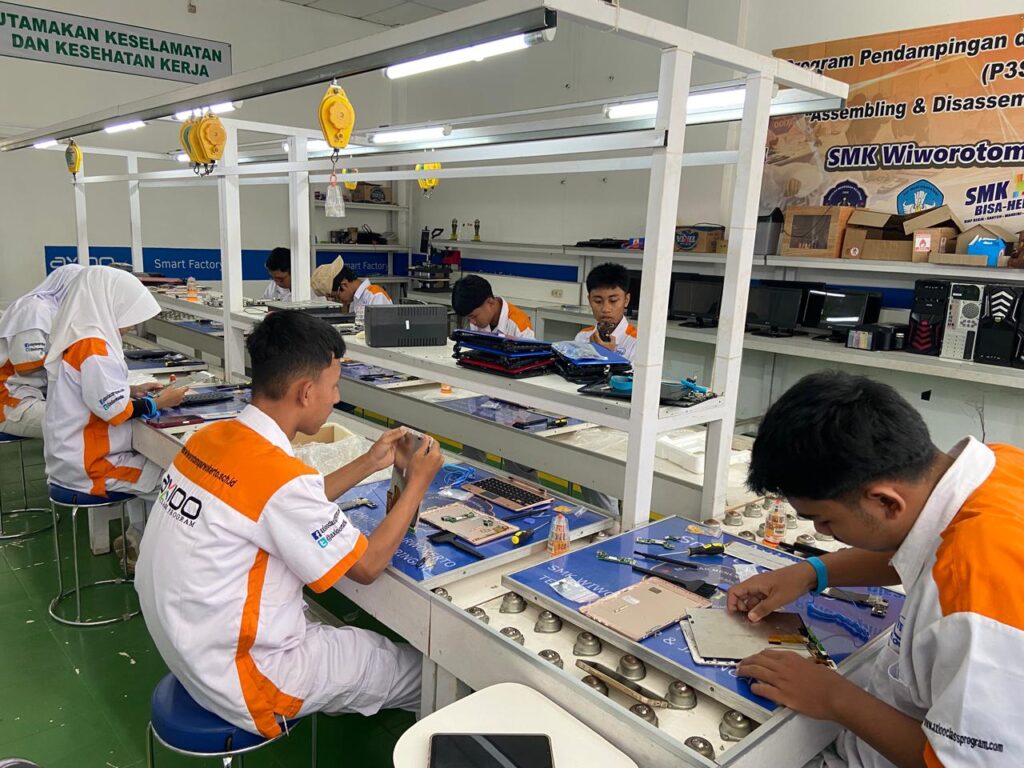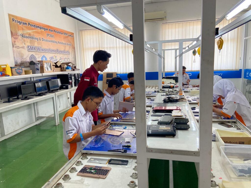 Pada hari Rabu, 14 April 2026, Konsentrasi Keahlian Teknik Komputer dan Jaringan SMK Wiworotomo Purwokerto melaksanakan kegiatan praktik perakitan tablet Axioo yang bertempat di ruang Teaching Factory.Kegiatan ini diikuti oleh siswa jurusan Teknik Komputer dan Jaringan (TKJ) atau Axioo Class Program dengan bimbingan langsung dari guru produktif, bapak Atmaja Jalu Narendra Kisma, S.Kom. Para siswa tampak antusias dalam mengikuti setiap tahapan praktik, mulai dari pengenalan komponen hingga proses perakitan tablet secara menyeluruh sesuai prosedur yang benar.
